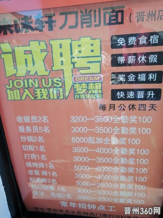 厨师,服务员,配菜,管吃住,公休